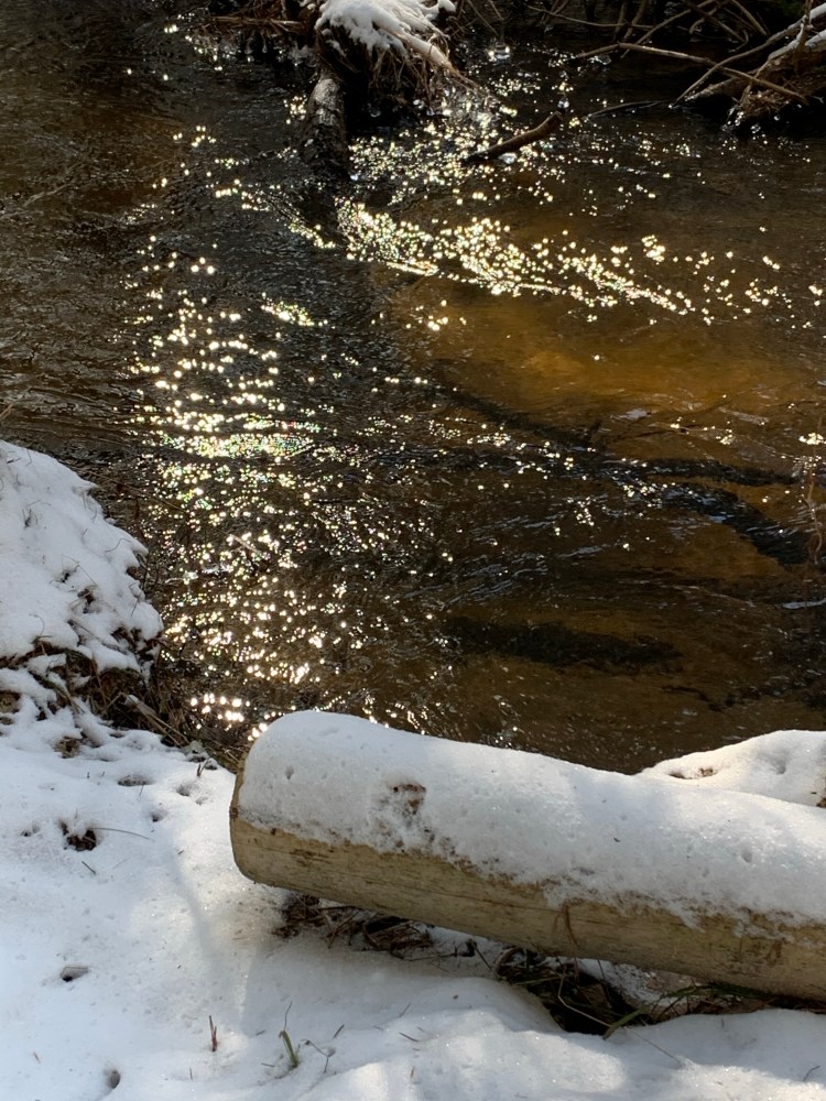 We were hoping to accomplish bigger miles on our second day, to make up for a shorter first day, but again, the deeper-than-predicted snow and early sunset made that a challenge. However, the day was filled with scenic views, my favorite being the cedar groves along the streams, filtering the light as it reflected down onto the crystalline ice formations along the river banks.