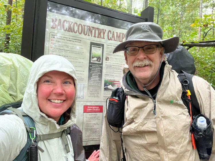But we hadn’t driven all the way from Michigan to Virginia to hide from the rain, even if it was the remnant of a hurricane, so I sent back an affirmative to Nina, and she picked up me and my hiking buddy, Jeff, shortly after. The rain continued to fall on the hour-long drive, but the rolling hills and farmland were beautiful anyway, and by the time we arrived at the trailhead, I was in “embrace the suck” mode.
