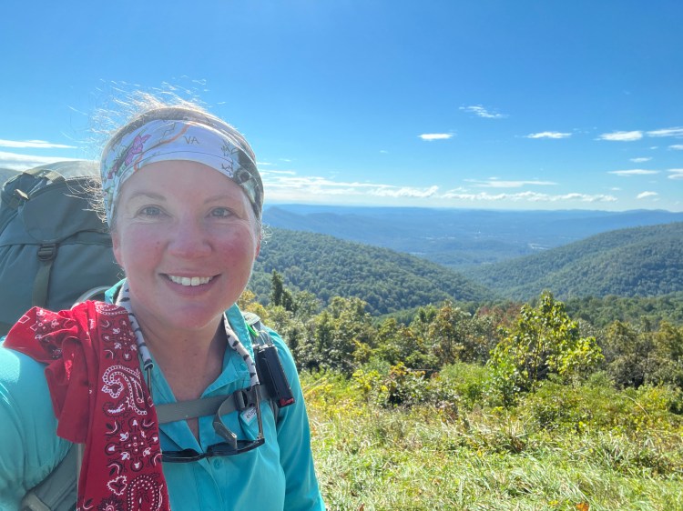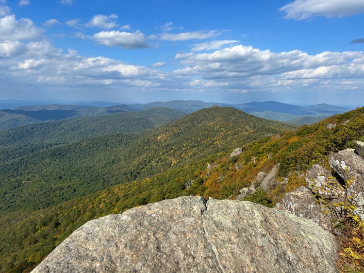 As we traveled Skyline Drive to see the park highlights from the car, I couldn’t believe our hike had come to an end. We had hiked 101.5 miles, according to my Gaia app that I used to record each day’s hike. As we drove along Skyline from the north end of the park back to where we had begun at Rockfish Gap, it seemed to take forever, and even as I recognized different road crossings where we’d stopped to have a snack and distinctive views of towns far below and the famously blue-hued mountain chains, it was hard to believe that we had hiked that whole distance. It was certainly one of the most uncomfortable trips of my life, but also one of the most beautiful and rewarding. I loved the simple routine of hiking every day, listening to the various hikers we met at each shelter, the amazing views that occurred every so often, and the feeling of accomplishment that came with getting to the top of each mountain peak, looking back at where we’d begun earlier in the day.