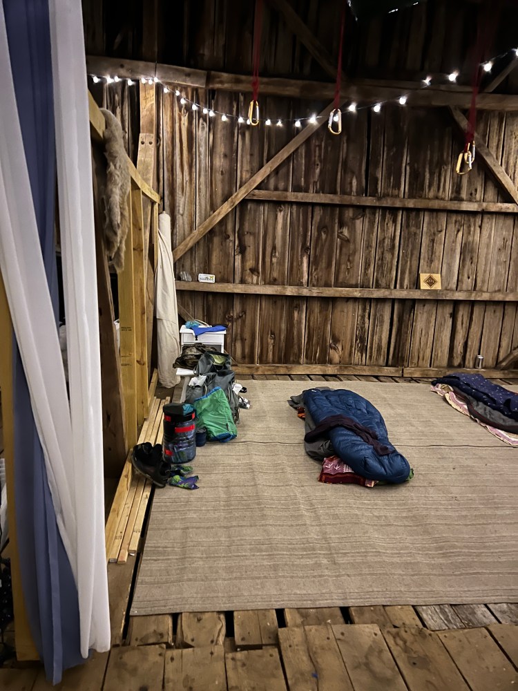In order to meet our shuttle driver, Wayne, at 4:00, I hiked the fastest mountain downhill of my life, my fear of falling outweighed by my fear of missing our ride. Wayne was a kind and amusing local character, and we enjoyed his company as he picked up another hiker, took us into town to the gear outfitters, to a local brewery to grab a couple cans of beer, and then dropped us at the farm. We made our way into the barn, and got an impromptu tour from another hiker. The barn was not heated, but had cozy couches for us to hang out, lots of extra blankets, and a dining room table that would soon be laden with homemade vegetable soup, roasted sausages and chicken thighs, baked potatoes, and for dessert, pear crisp with vanilla ice cream. It was a peaceful and entertaining night, as we listened to other hikers’ stories and told our own. The food had been amazing as promised, and we snuggled into our sleeping bags with full bellies.