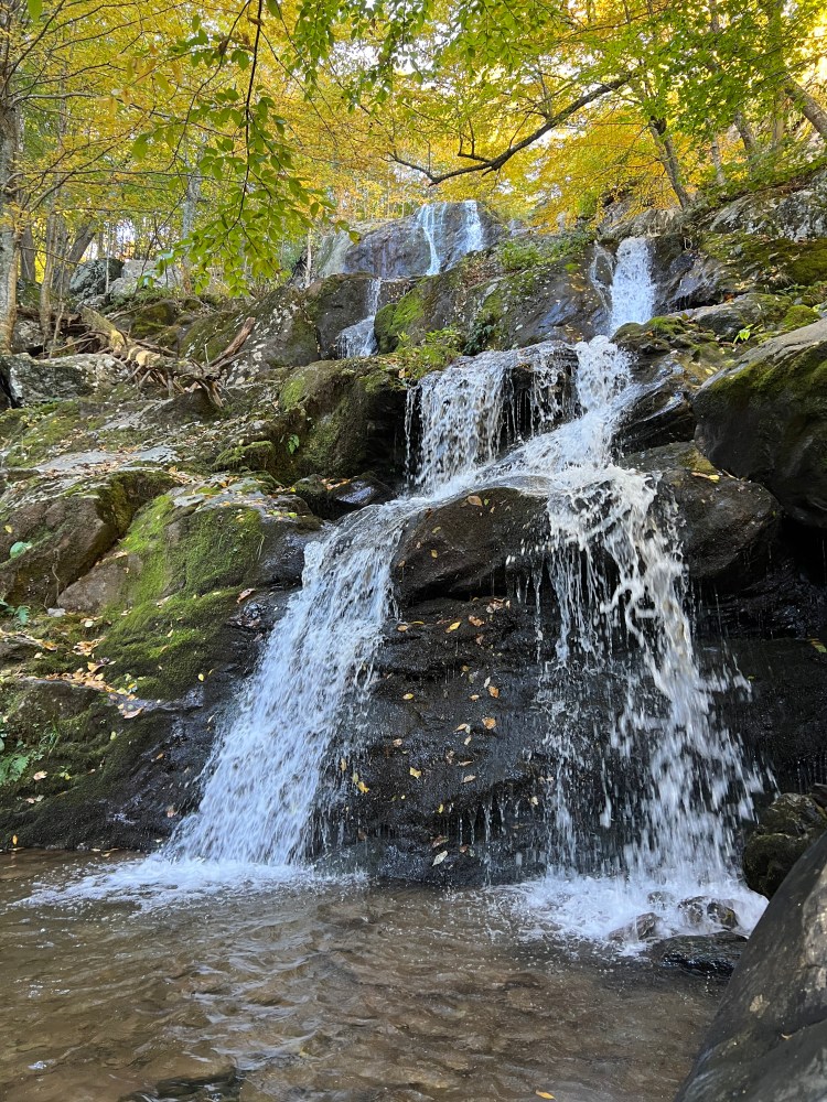 In the morning, my knee was still iffy, so we decided to take advantage of the car and use it to check out some of the waterfalls the AT had bypassed. We drove to Dark Hollow Falls trailhead, and cooked up some oatmeal and coffee on the stone wall of the parking area. Fortified for the morning, we began the hike down to the falls. Carrying just a daypack with my first aid kit, water filter, and a few snacks, my knee felt much better than it had the day before. The falls began as a small series along a tiny stream before becoming a more impressive sight in terms of height and water volume. Definitely worth the couple of miles to hike in and out.
