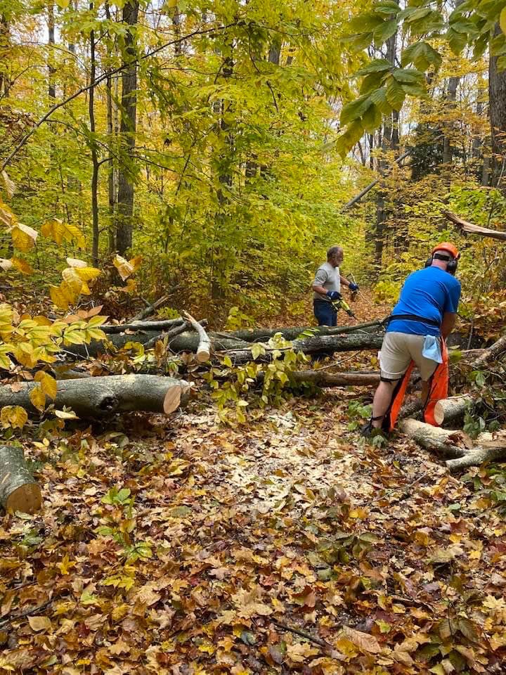After Christmas, my husband Geoff was a huge help, not only gifting me a saw, but showing me how to safely remove downed trees, first in the woods by our house, and later in the preserves. This met the safety requirements of the land conservancy, as he accompanied me on every trip. However, the North Country Trail (NCT) requires certification through the National Parks Service (NPS), and after coming along on a maintenance hike with a local sawyer, I decided to pursue the sawyer certification so that I could volunteer to work on sections of the NCT, too. My local NCT chapter newsletter had mentioned that a few people were signed up for this training, and I responded to the newsletter to find out how I could sign up, too.