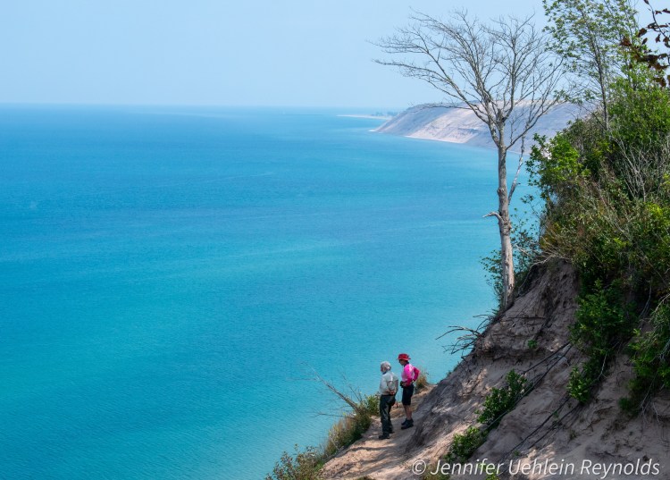 The following morning, David and I were cooking breakfast at the lake overlook when a pontoon came around the point with a crew of six official looking people, all wearing orange life jackets. They pulled the pontoon up onto the beach, secured an anchor, and after taking off their life jackets, each shouldered several boards and began to hike up the steep slope of the dune. It seemed the boardwalk crew had arrived to continue their work. Luckily, they didn’t need the boards we were cooking on just yet! My fuel canister ran out just as I finished heating water for coffee and oatmeal, so it would be cold-soaked meals from here on out.