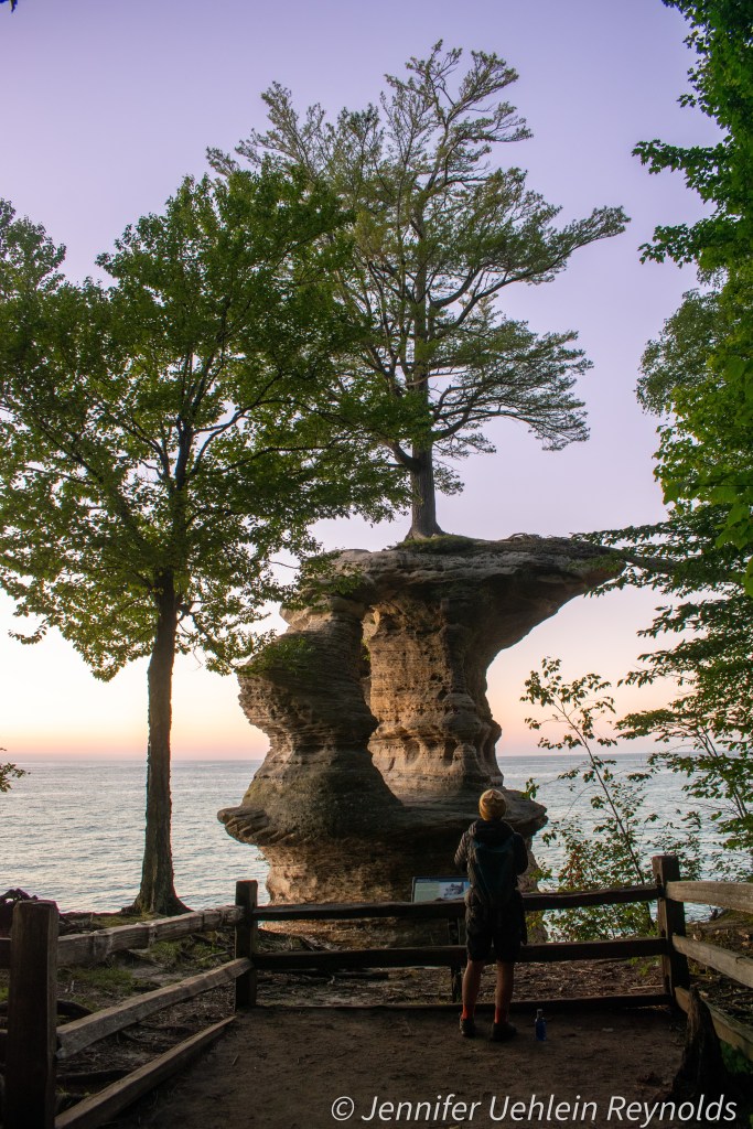 It was a relatively easy hike to the Au Sable campground–while the NCT is not blue-blazed through the National Scenic Lakeshore, the trail is easy to follow, and was in good condition. When we arrived, we occupied our three reserved sites (which only allow two tents or hammocks and up to six people per site). Since our group was made up of six people camping in separate tents, three campsites were required. While we were setting up, a group of young men asked about building a fire in the metal fire ring that was near my campsite. They had been ticketed ($255) the night before in a different site for building a fire in an existing rock fire ring, not having read their permit carefully (fires are only allowed in the metal fire rings) so they wanted to be sure they were not only legal, but not going to be an annoyance to me and Jeannie, who were camped closest to the fire ring. We assured them we’d love to share a fire later, and promised to scavenge some deadfall while we were exploring.