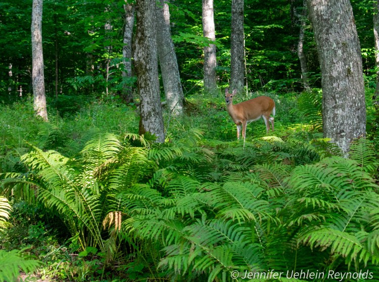 I came across the sign for the Cliffs campsite amongst a thicket of raspberry brambles and ferns, the path hidden by their foliage. As I made my way through, I startled three deer who were intent on holding their ground, so I waited a few minutes before moving forward, taking the opportunity to snap their picture. Eventually, they moseyed along and I made my way into the campground, which was in a clearing, and empty of other campers. I unpacked a little, adding water to my dehydrated chili supper so that it would have adequate time to soak before dinner time. I struggled to set up my damaged tent alone, accidentally losing the shock cord down the pole when I tried to improvise a fix. It took me a good 15 minutes to get my shock cord back through the tent pole and secured, but eventually I got the tent up, and began to collect firewood. I had about two hours to myself before my companions rejoined me. After they set up their tents, I lit the fire and we ate dinner. My cold-soaked chili wasn’t bad–the weather was warm enough that a hot meal wasn’t really necessary, although a few crushed corn chips would have been a welcome addition.