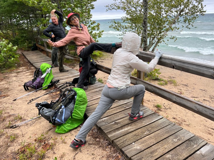 After cooking breakfast on the picnic table at the visitor center parking lot and getting a group photo, we took off on our hike. Our destination for the day was Au Sable East campground, about seven miles away. We were using backcountry campgrounds that my friend Doreen had reserved in advance (dispersed camping is not allowed at Pictured Rocks, so you need to use the National Park Service website to make reservations.)