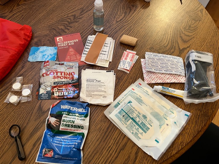 While this kit may seem like overkill, I have been very happy to have some of these items along. I hope that I never have to use some of them, but I am more comfortable knowing that I am prepared to stablize myself or others in the case of a serious injury. It is by no means perfect, and has evolved as I learn more and have more experiences. I’m sure it will continue to evolve.