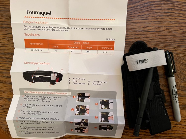 Tourniquet and Sharpie to mark time applied (Unless you have training specific to the use of a tourniquet, it is not advised that you apply one. Because I do trail maintenance where chainsaws are involved, it makes sense to me to bring this, but it’s probably overkill for most people.)