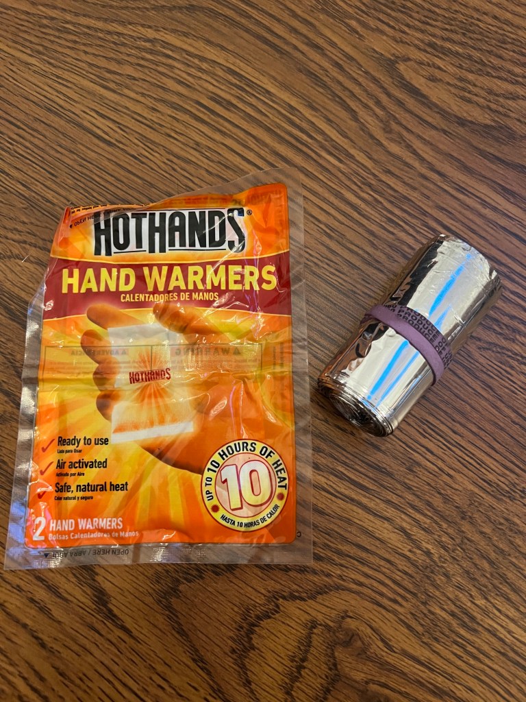 Mylar blanket used underneath the sleeping bag of backpackers who have been cold at night