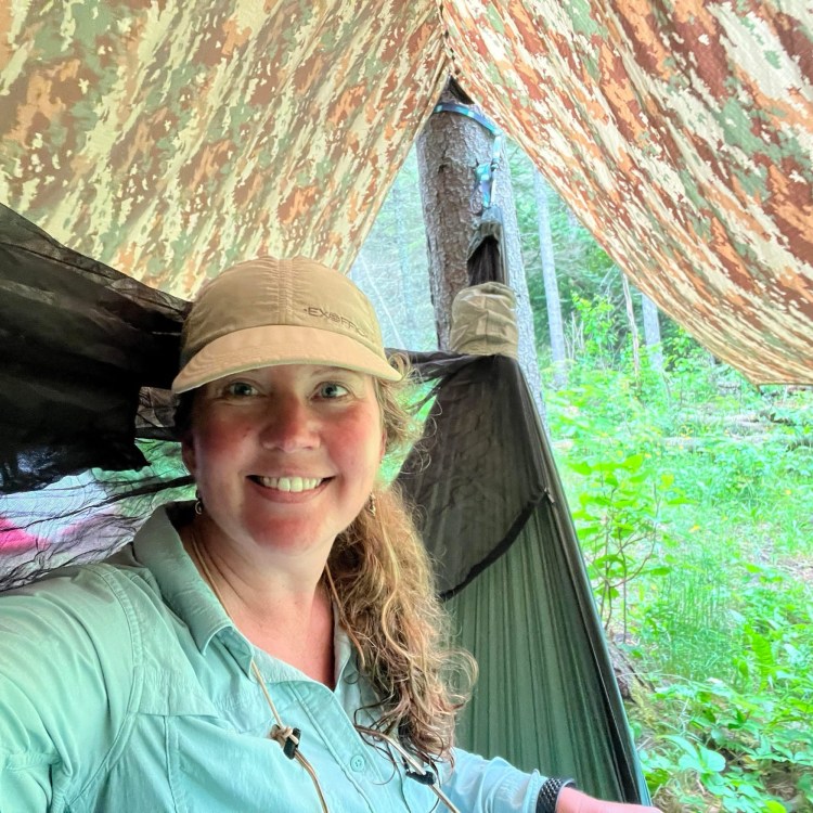 My sleepy brain registered the snap of twigs and muffled crunch of lichen. The sounds came at predictable intervals, every few seconds, a gentle plodding. Then a snort. As my mind cleared, I peered through my hammock’s bug net, looking under the edge of my rain tarp. In the pre-dawn twilight, my eyes struggled to focus. The sounds of movement came again, and a silhouette emerged: four tall legs moving parallel to the tree trunks. I scooted a little lower in my hammock and saw the whole animal: a bull moose grazing the vegetation around our campsite. It was so close that I could hear it chewing, and the inhale and exhale of its breath.