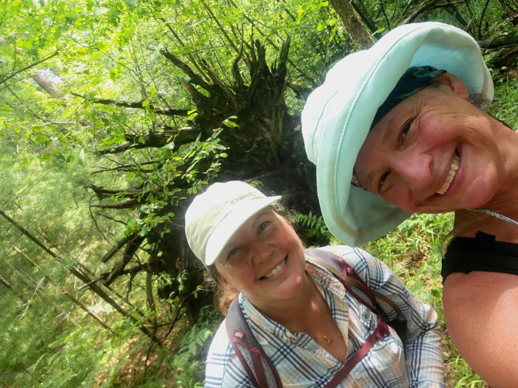 Selfie with upturned tree roots. (Jeanie’s photo)
