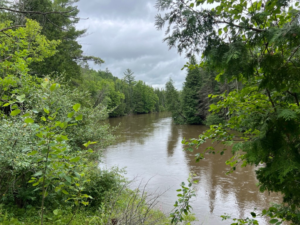 This section of NCT has a series of benches at scenic overlooks, and we took advantage of most  of them to stop and enjoy the view, eat snacks, and talk gear, food, and hiking plans for our upcoming trip to Isle Royale. We found a few ripe raspberries, pondered a spot where it looked like someone had dragged a body or canoe down a steep bluff (probably a beaver slide), and marveled over the gorgeous views of the river. A few areas were thick with ferns, and we were thoroughly soaked for most of the hike, but it was a lovely hike.