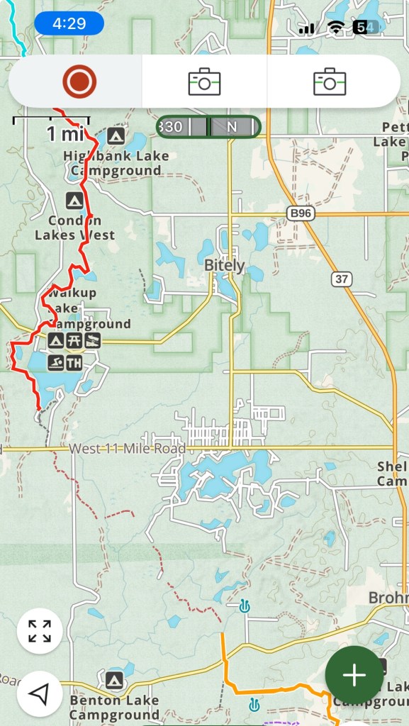 I’m not entirely sure how it happened, but I ended up with an unhiked 4.5 mile long section of the North Country Trail in the Manistee National Forest, between Nichols Lake and Pierce Drive. I think I went on two separate backpacking trips in different years, planned by different people, and this little section just happened to not be included in either trip. I really like seeing the lines connect on my Gaia recording, and this stretch would connect from Brevort Lake in the U.P. to Croton Dam near Newaygo in the Lower Peninsula, almost 400 miles of contiguous trail hiked. So with that in mind, I’ve been looking for an opportunity to fill that gap, since it’s about a two and a half hour drive from my house, which violates my “time on trail must be greater than time spent in car” rule.